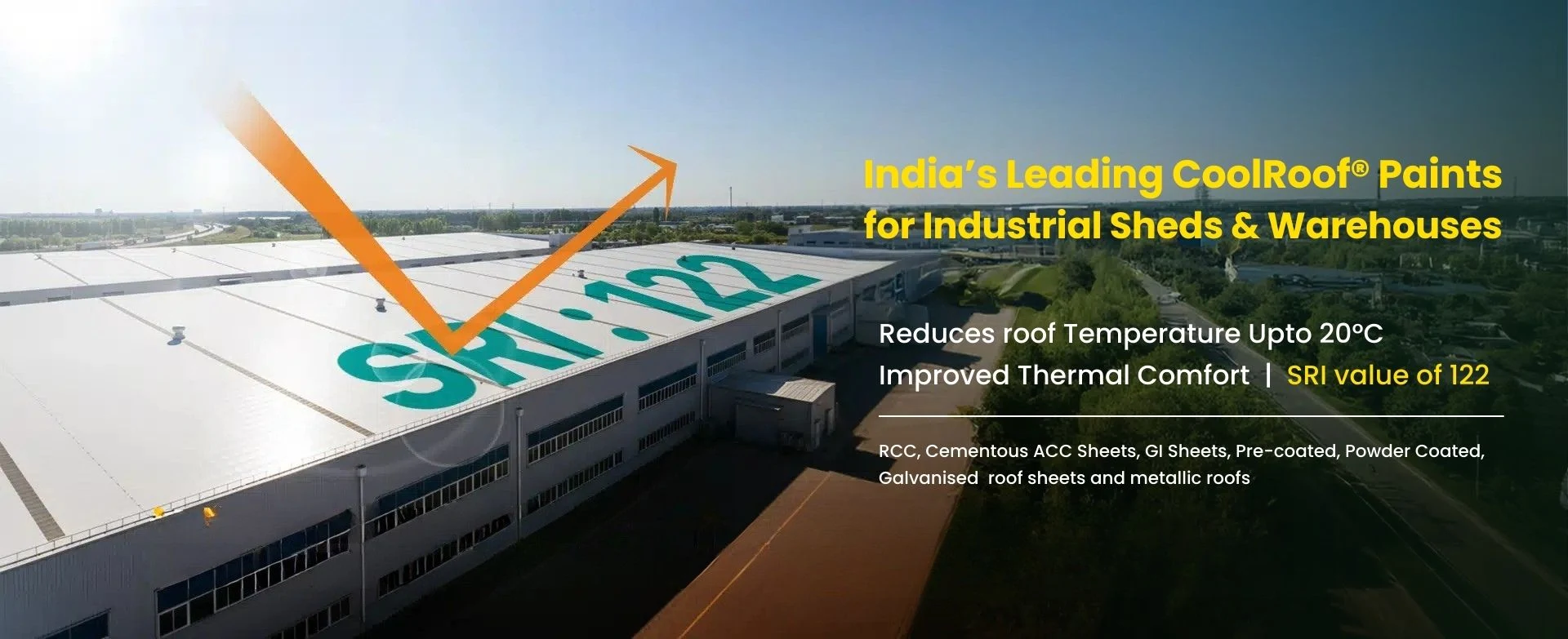 COOLROOF® high SRI Paint is required to reduce the temperatures of all types of roofs and walls, which is caused due to excessive Solar Heat Radiation.